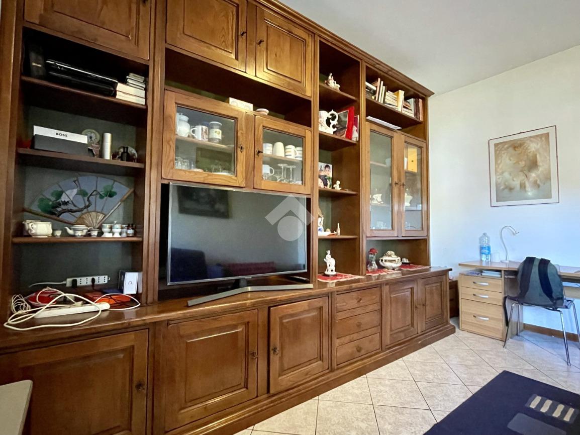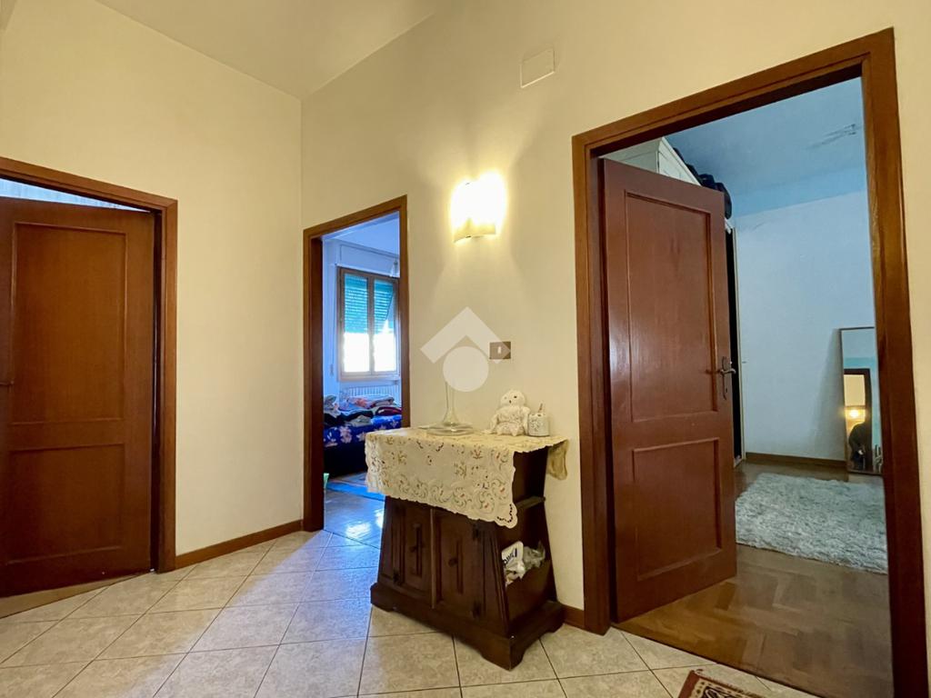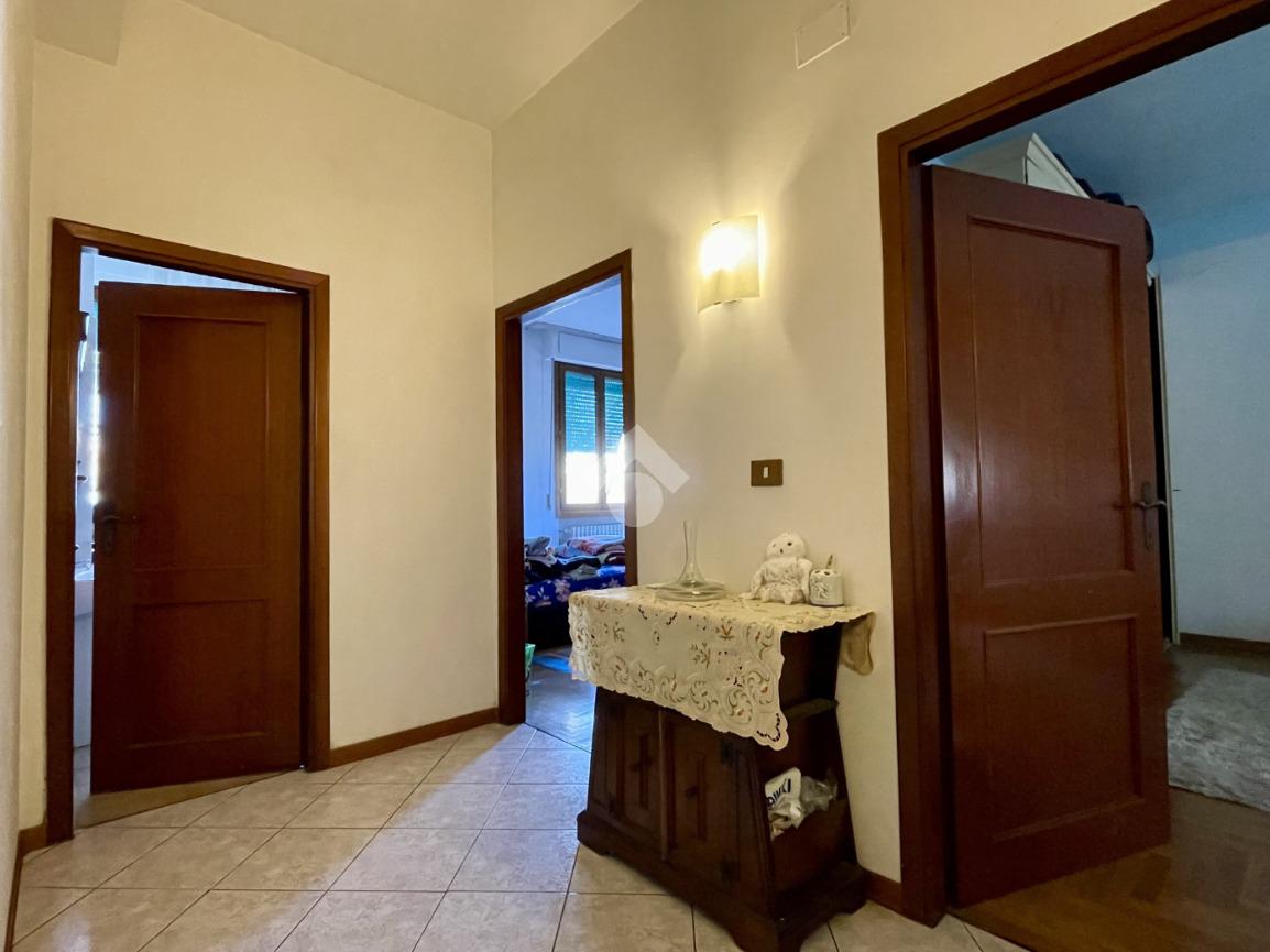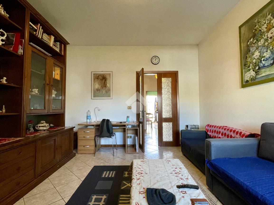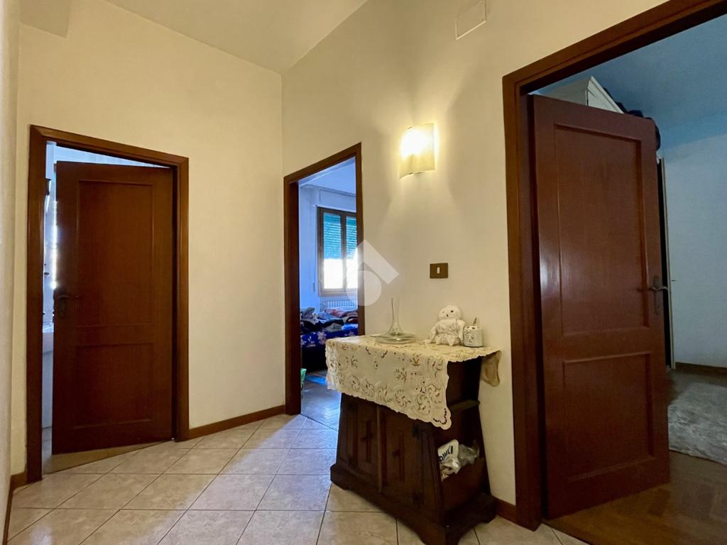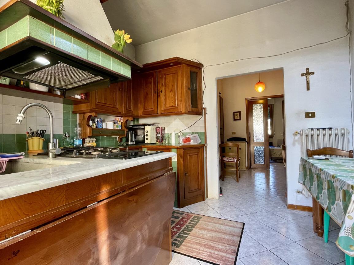 E' composto da un ampio ingresso, cucina abitabile, soggiorno, disimpegno, bagno finestrato, e tre camere da letto.
